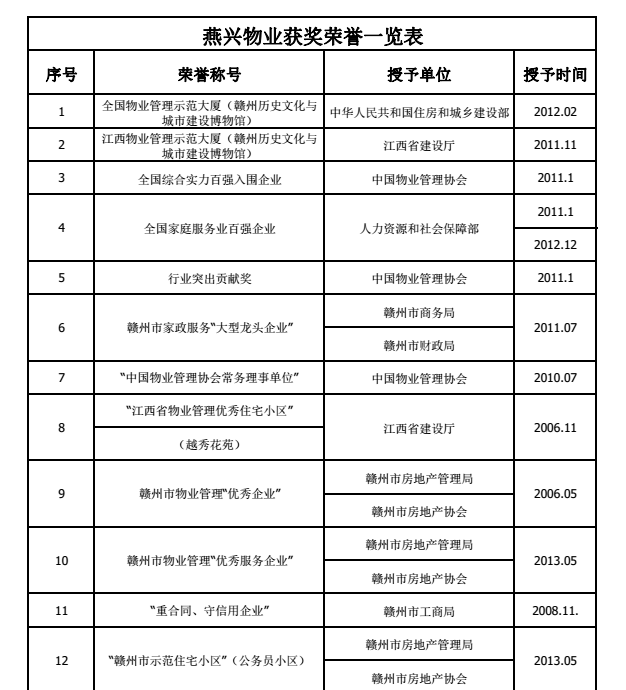 燕興物業(yè)近年來(lái)獲得榮譽(yù)證書(shū)及獎(jiǎng)牌